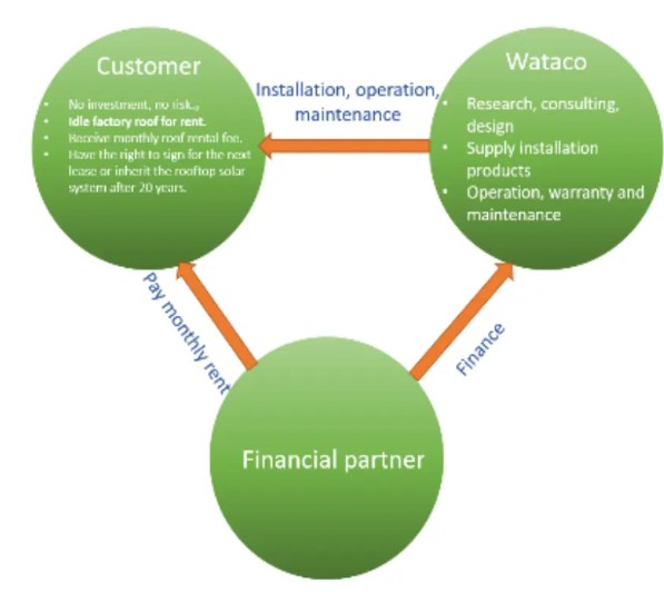 The Esco model is a solution to take advantage of the idle roof of the business to install a solar power system. WATACO will cooperate with a financial investment partner to provide a full package of Consulting - Design - Construction - Operation - Warranty.
