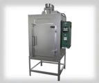 Hot air circulation oven for preheating workpieces and modifying material properties.