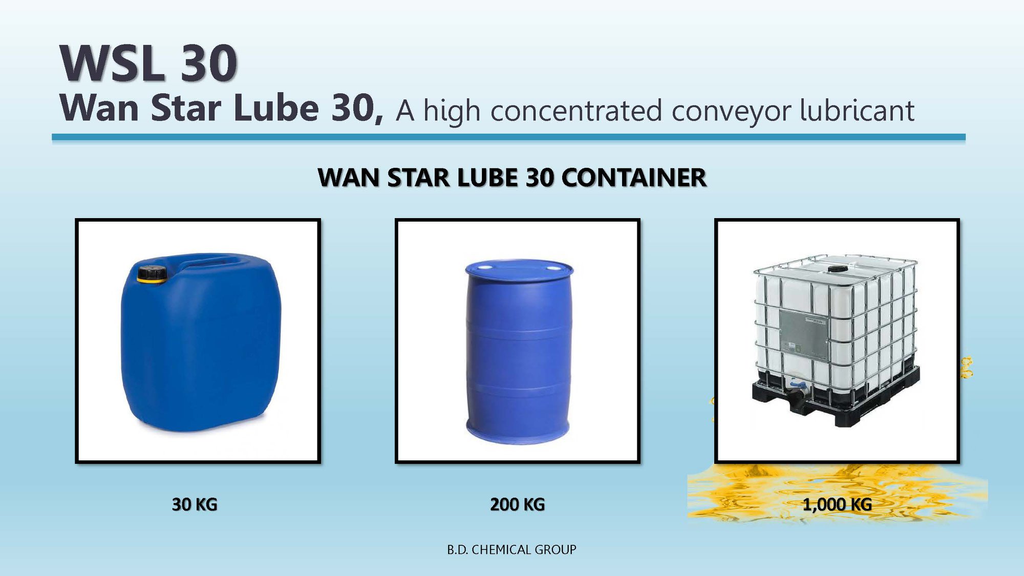 B.D. Chemical Group specializes in the synthetic lubricant "WAN STAR LUBE 30" for conveyors and food lines, focusing on performance, safety, and cost efficiency.