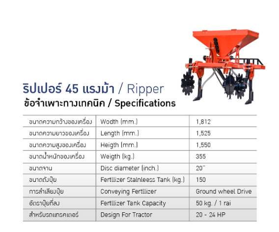 Fertilizer ripper, 45 horsepower, is a 2-legged ripper, comes with a soil cutter for cutting sugarcane leaves. work fast Fertilizer comes out regularly, can put 150 kilograms of fertilizer, so there is no need to constantly add fertilizer.