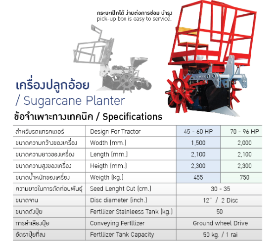 Double groove sugarcane planter Able to open the sugarcane pick-up truck for maintenance saves human labor Reduce the process of sugarcane planting to only one step.