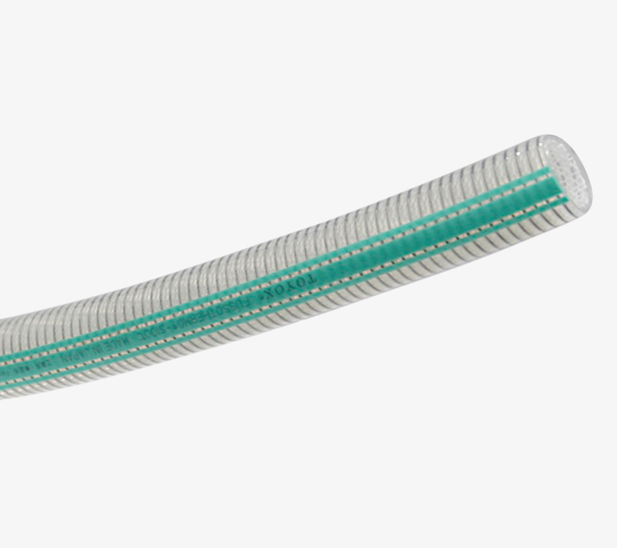 The TOYOX Heat-Resistant Hose is designed for use in a wide temperature range of -30 to 150°C. It addresses common issues on work sites such as hose kinking and collapsing, hardening, and fluid leakage. This contributes to enhanced production capability, safety, and cost reduction.