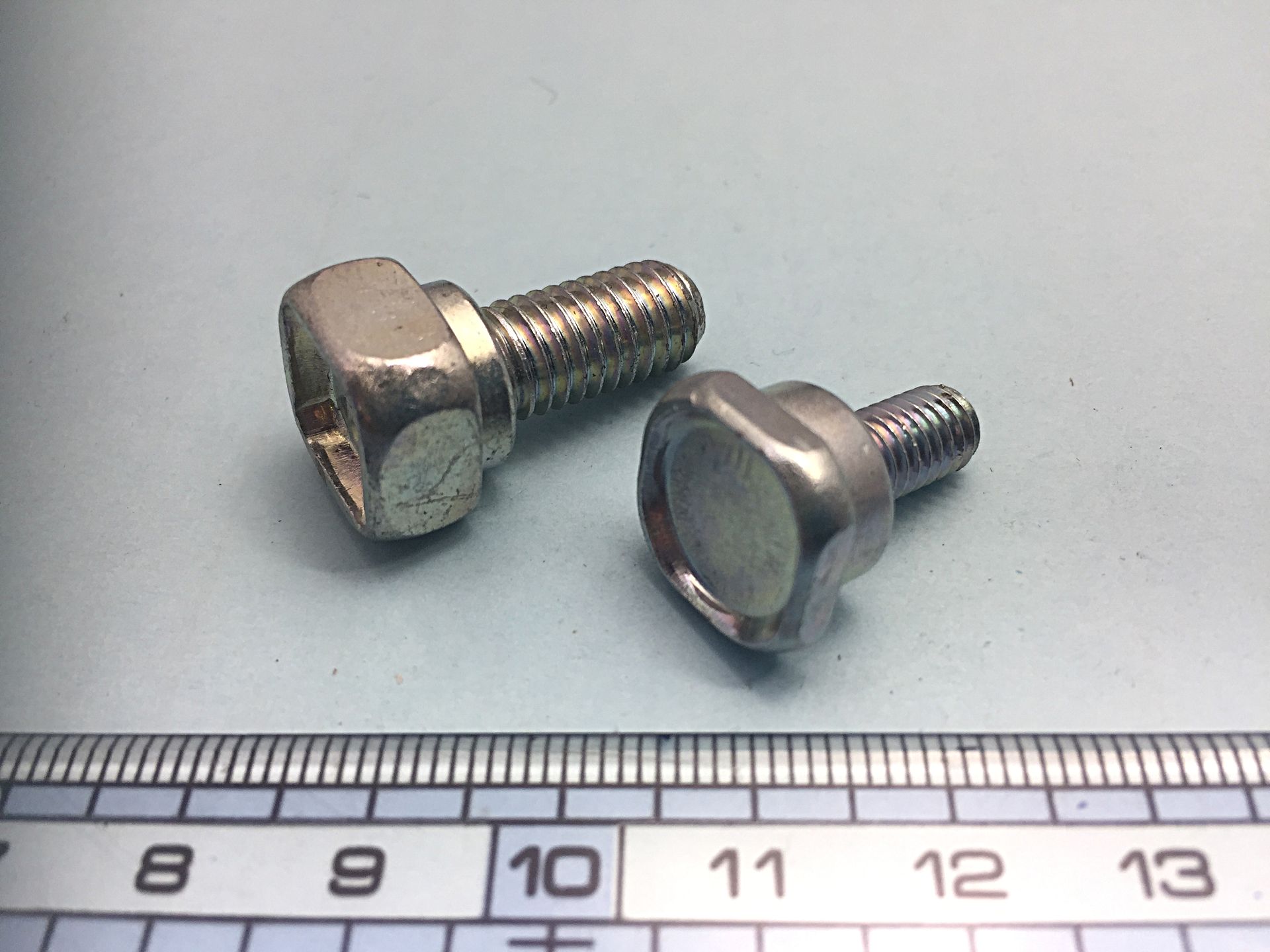 The bold head shape is square to prevent rotation during insert molding.
