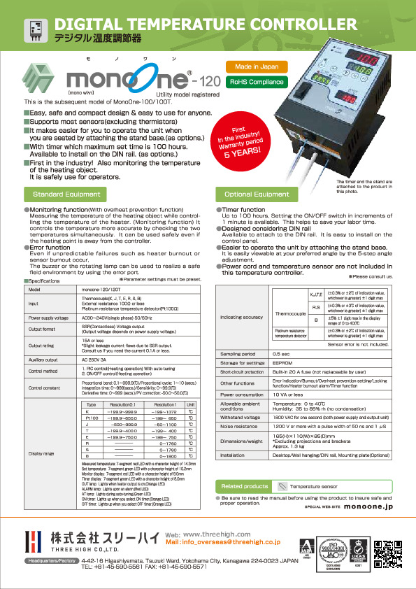 ★【Digital Temperature Controller - monoOne-120】Specifications Introduction