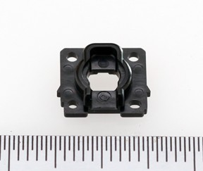 The photo shows a sensor base component manufactured for the information equipment industry.